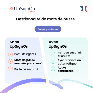 UpSignOn est un gestionnaire de mots de passe développé et hébergé en France. Il permet de centraliser les identifiants, de les partager de manière contrôlée et d’améliorer l’hygiène de sécurité grâce au chiffrement de bout en bout et au MFA “by design”. La solution est multi-plateforme : Windows, Linux, macOS, iOS et Android.